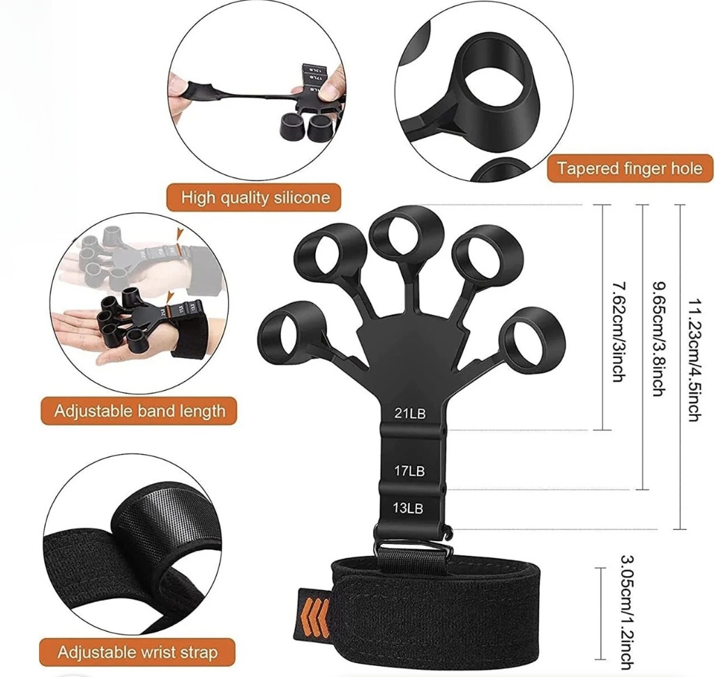⚡ CÓMO SE USA (EN 30 SEGUNDOS) 1) Ajusta la muñequera (firme y cómoda) 2) Coloca los dedos en los anillos 3) Haz 2–3 series cortas (30–60 segundos)